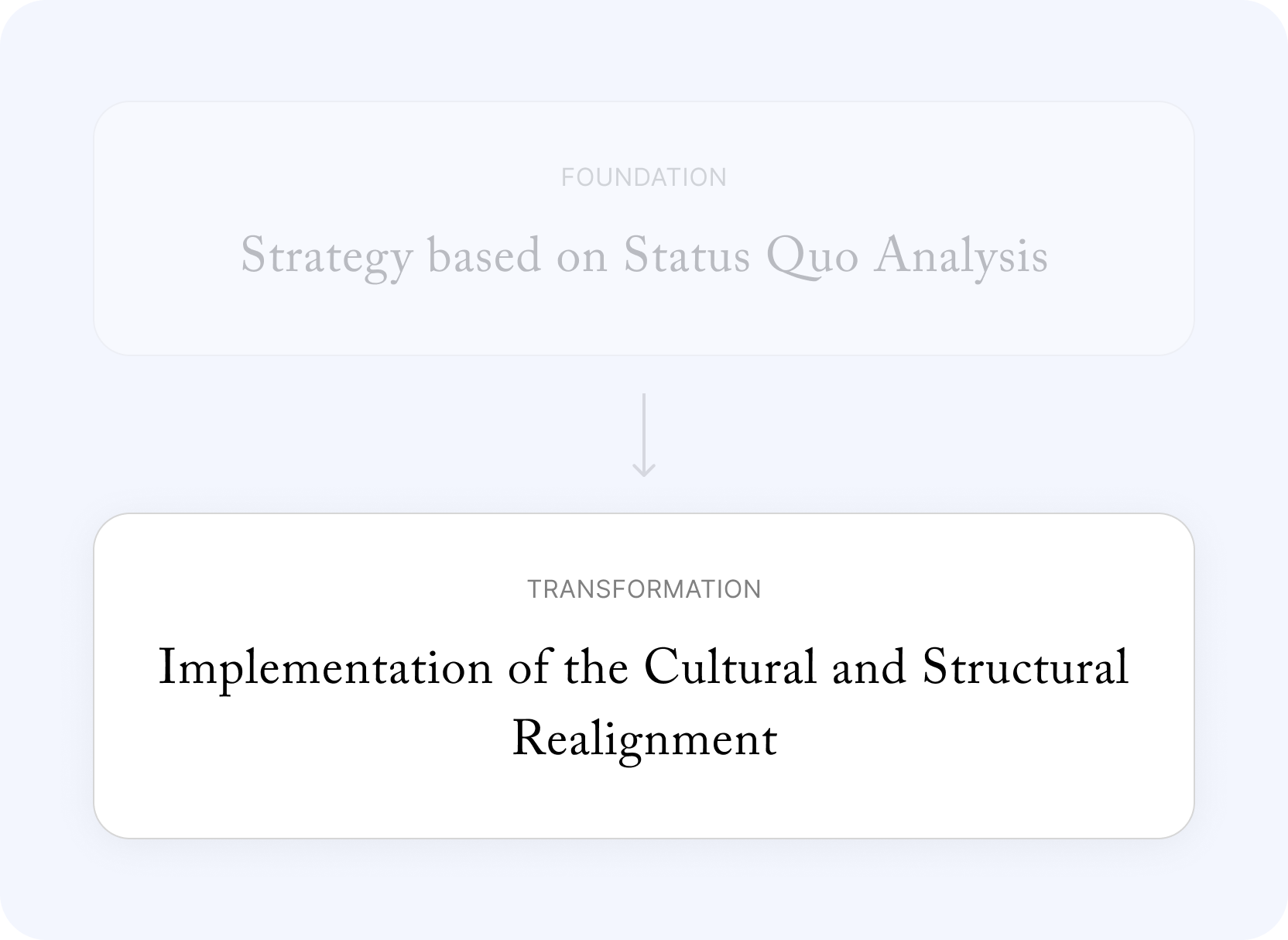 The result is a clear, realistic, and actionable roadmap that is understood and supported from within - the foundation for a successful cultural and structural realignment.